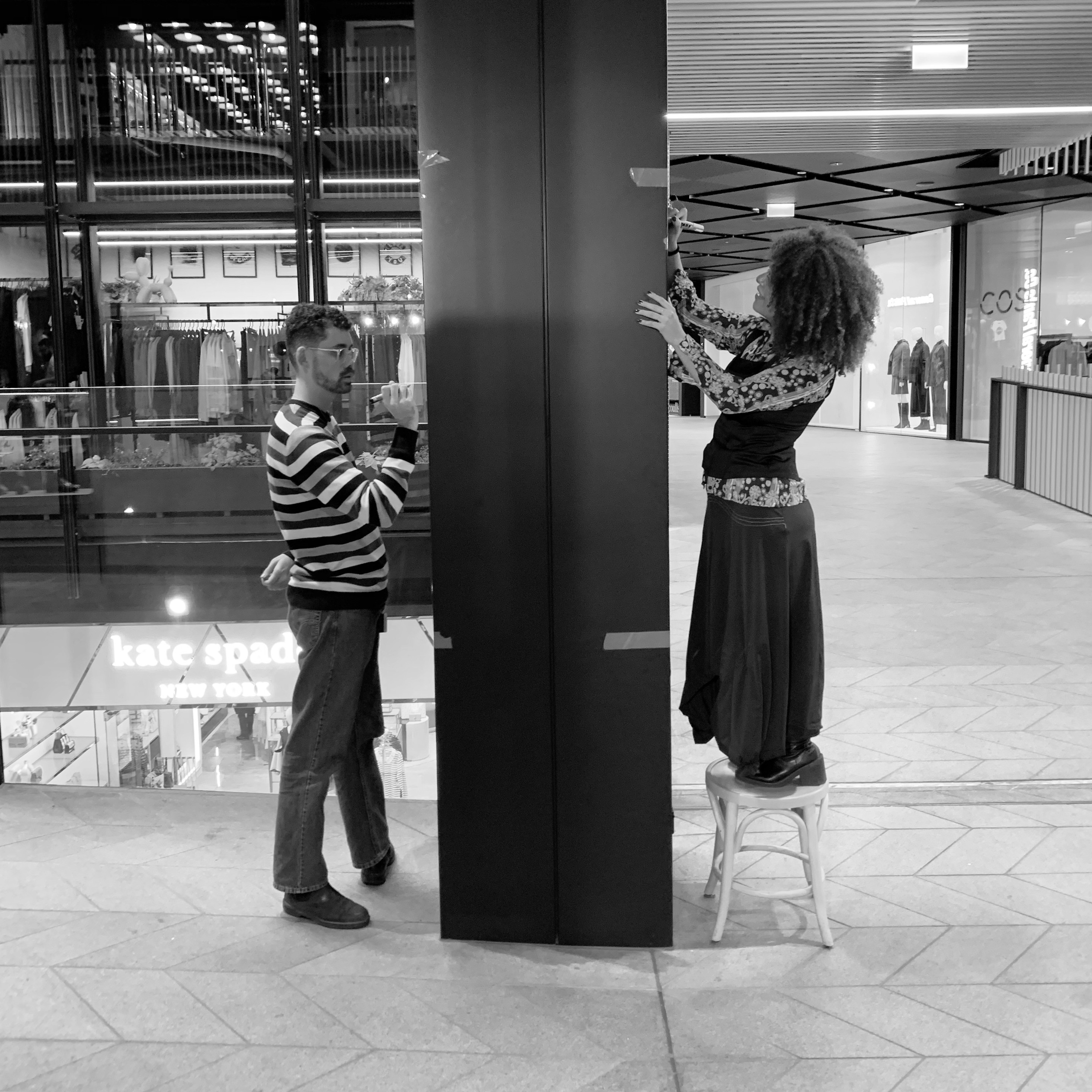 Rather than a single installation, the work unfolded as a series of gestures across the precinct — quiet, intentional, and cumulative.